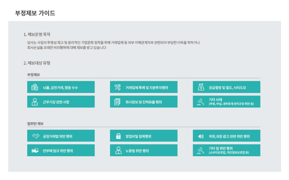 부정부패 없는 깨끗한 사회를 만들고, 위법 행위 없는 준법경영 실천을 위해